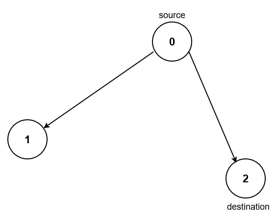 Input: n = 3, edges = [[0,1],[0,2]], source = 0, destination = 2