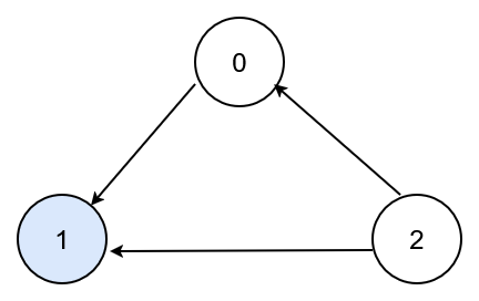 Output: 1Explanation: There are three persons labeled with 0, 1 and 2. graph[i][j] = 1 means person i knows person j, otherwise graph[i][j] = 0 means person i does not know person j. The celebrity is the person labeled as 1 because both 0 and 2 know him but 1 does not know anybody.