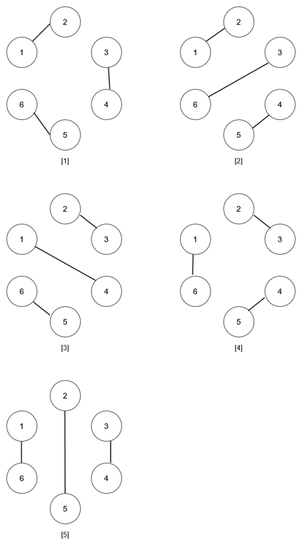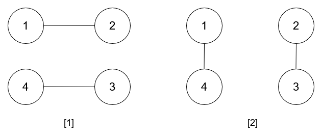 There are two ways to do it, the first way is [(1,2),(3,4)] and the second one is [(2,3),(4,1)].