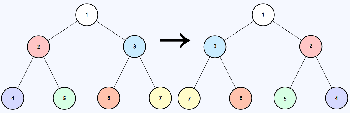 From the diagram, you can see that the left and right children of every node in the tree are swapped. Can you think of a way to achieve this recursively? Maybe an algorithm that is helpful to traverse the tree.