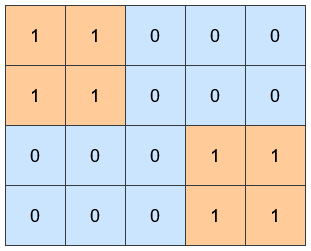 Input: grid = [[1,1,0,0,0],[1,1,0,0,0],[0,0,0,1,1],[0,0,0,1,1]]