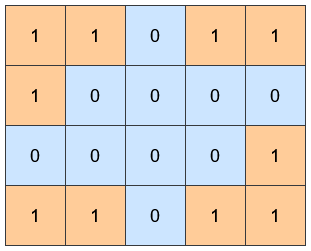 Input: grid = [[1,1,0,1,1],[1,0,0,0,0],[0,0,0,0,1],[1,1,0,1,1]]