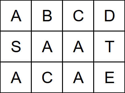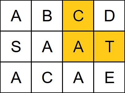 For the word to be present it must be possible to form it with a path in the board with horizontally or vertically neighboring cells. The same cell may not be used more than once in a word.